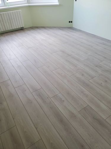 Постелим на выровненное основание пола подложку. Положим ламинат. Работу выполним за 6–8 часов в зависимости от площади пола. Будет шумно и пыльно. Цена за укладку ламината от 20 кв. метров.